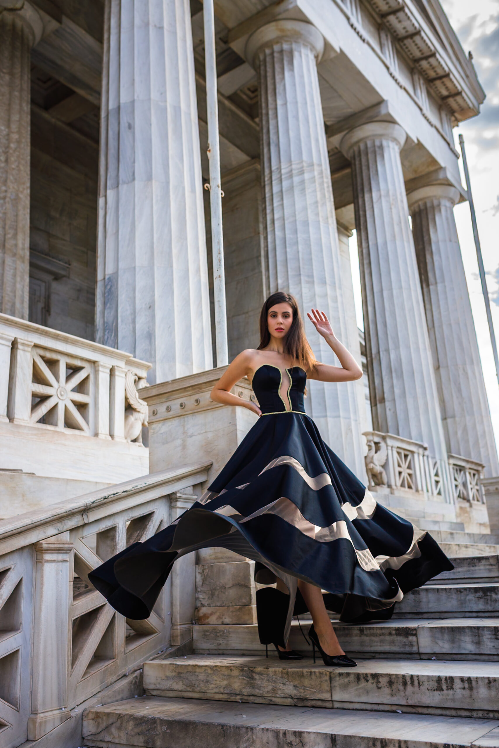 Flagowy Model sukni wieczorowej , którą mamy w 5 wersjach kolorystycznych .Dzieło sztuki  zaprojektowane z myślą o odważnych kobietach ceniących sztukę krawiecką oraz unikatowość . Suknia posiada zastrzeżony wzór gorsetu , a detalem jest „FALA” ,która jest kompatybilna z monogramem marki, falą fama.